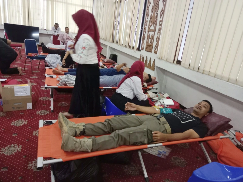 Satuan Polisi Pamong Praja Provinsi Lampung, bekerjasma dengan Palang Merah Indonesia (PMI) Lampung, mengadakan kegiatan sosial donor darah di Ruang Abung Balai Keratun, Komplek Kantor Gubernur Lampung, pada Rabu, 28 Februari 2024,