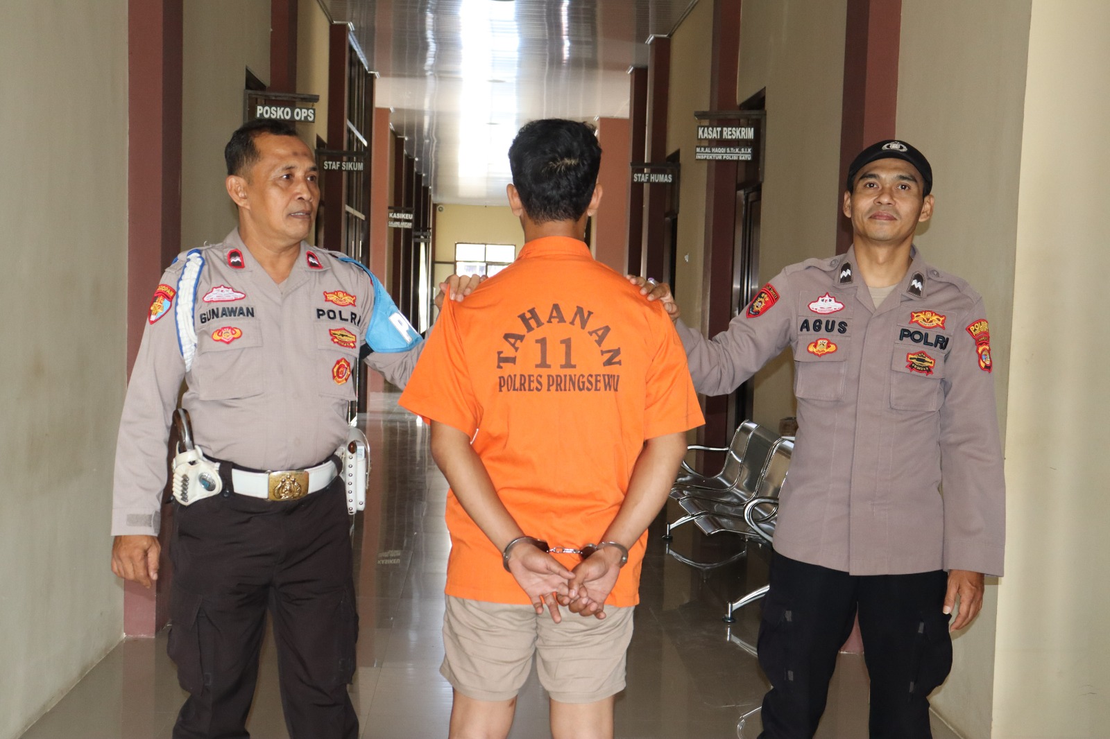 Kasat Reskrim Iptu Maulana Rahmat Al Haqqi, yang mewakili Kapolres Pringsewu AKBP Benny Prasetya, menyatakan bahwa penangkapan berlangsung tanpa perlawanan dari tersangka.