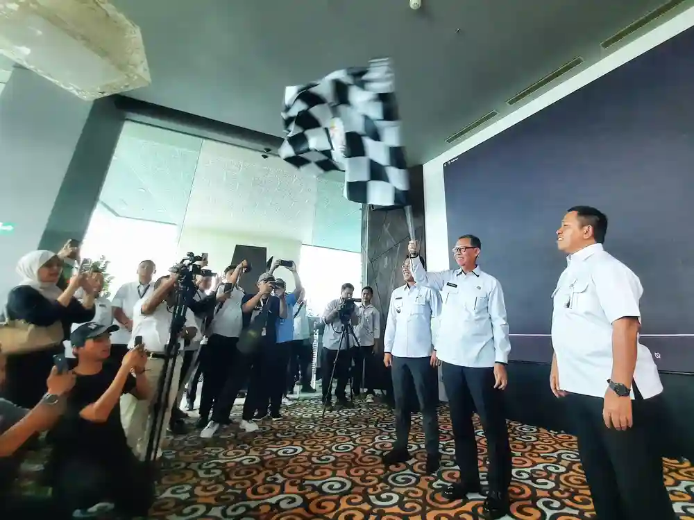 Sekretaris Daerah Provinsi (Sekdaprov) Lampung, Fahrizal Darminto, meluncurkan Lampung Half Marathon 2024 di Lounge & Bar Hotel Novotel, Bandarlampung, Rabu (28/02/2024) sore.
